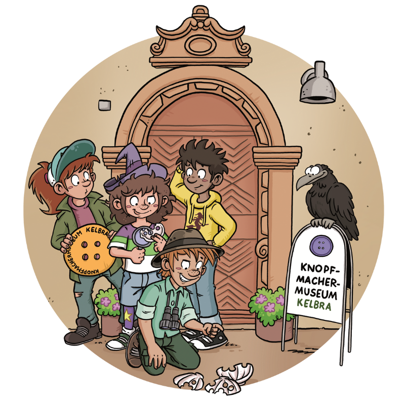 Eure Aufgabe ist es, im Museum Konrad Knopf zu finden! So viel sei verraten: Er liebt Knöpfe und besteht selbst aus ganz vielen Knöpfen.